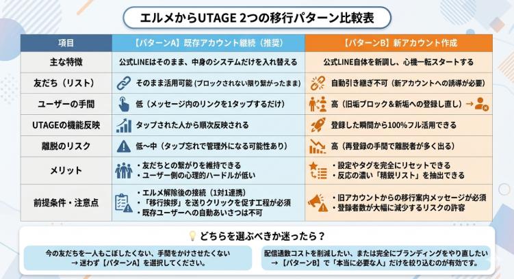 エルメからUTAGEへの移行には、大きく分けて下記2つのパターンがあります。