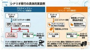 特徴: 「アンケートに答えたら、即座に教育用シナリオへ移動」といった、ユーザーの動きに合わせた「場所の移動」で流れを作ります。